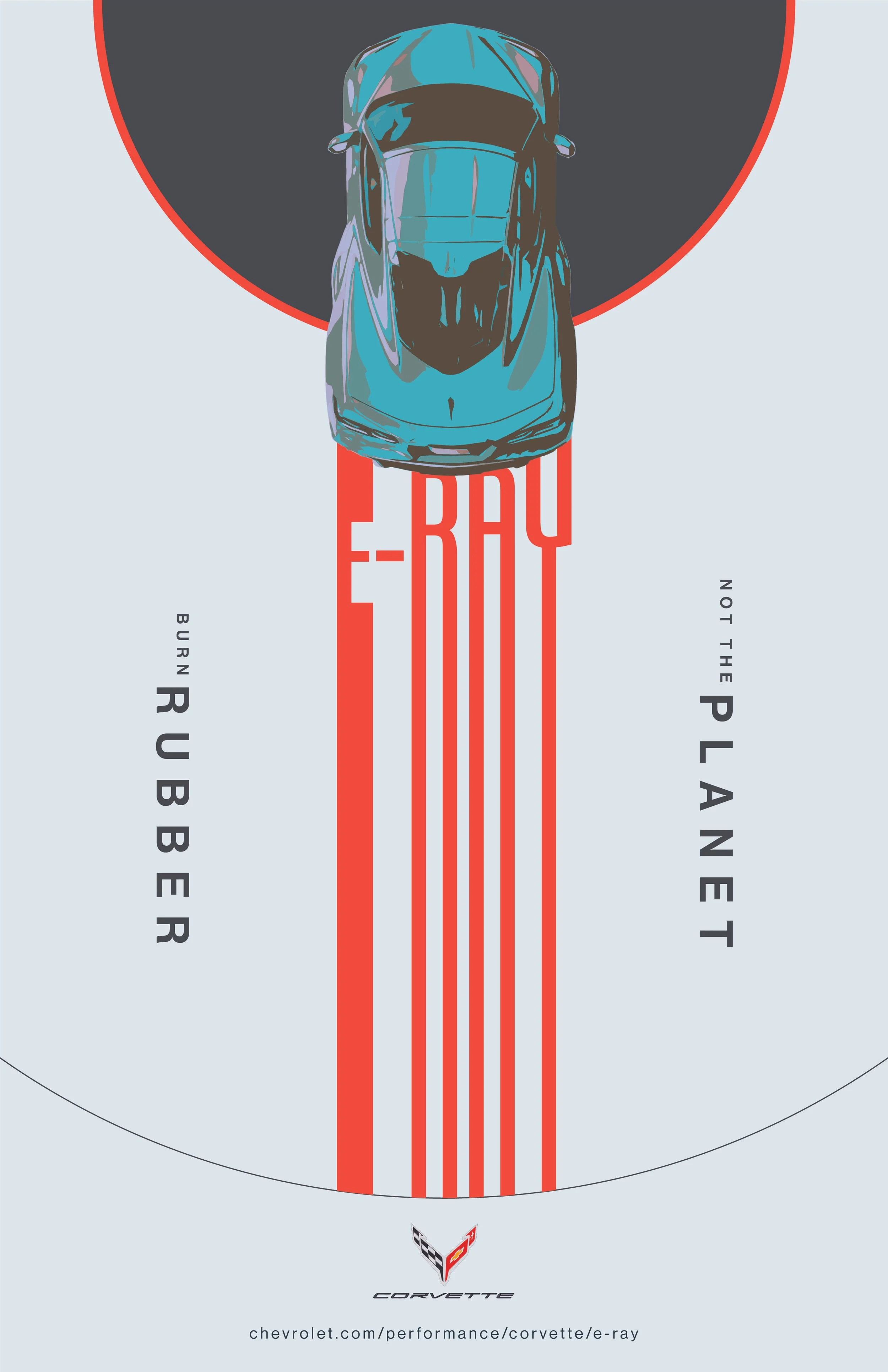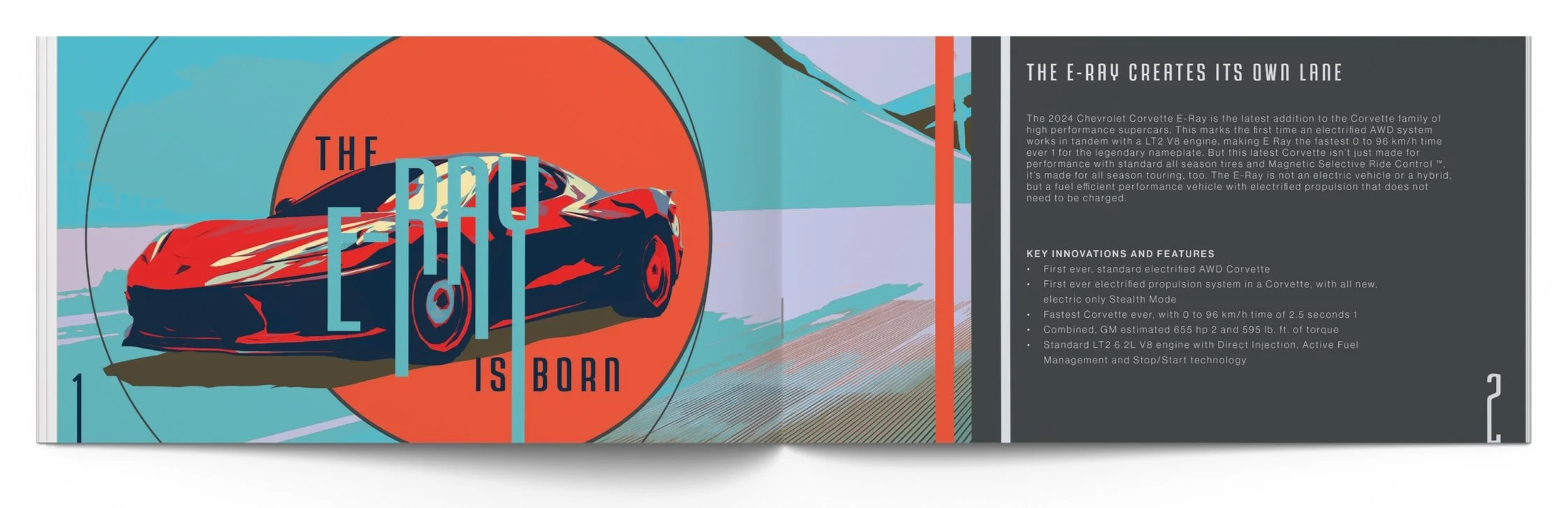 This promotional campaign for the Corvette E-Ray is centered around redefining the modern sports car by highlighting the vehicle’s unexpected evolution. This electrified icon blends raw performance with futuristic innovation. The visual identity uses elongated typography inspired by long-exposure photography, evoking both speed and the dreamlike motion blur. This streaking type treatment not only suggests the surreal power of the E-Ray but also mirrors the car’s ability to break expectations and shift the narrative of what a Corvette can be.